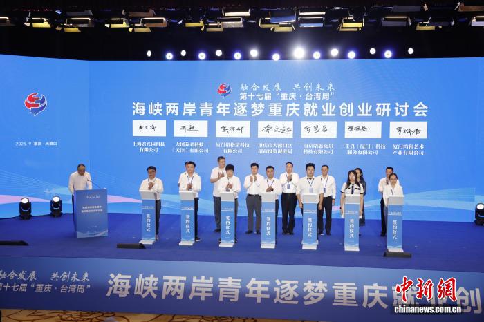 图为海峡两岸青年逐梦重庆就业创业研讨会现场举行项目签约。研讨会主办方供图