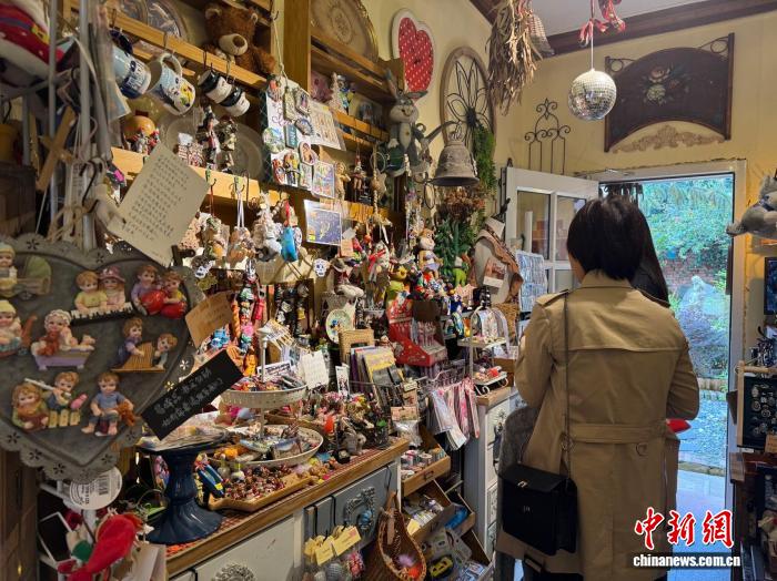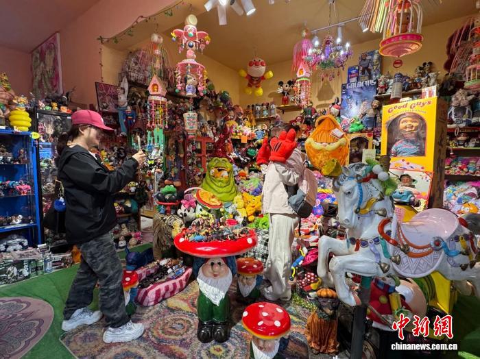 图为张安琪经营的玩具店内,游客正在拍照留念。杨英琦 摄